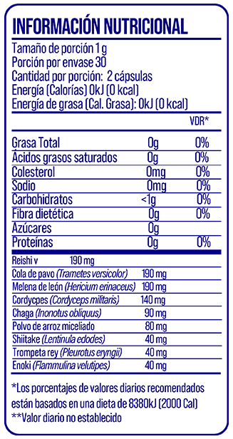 Mushroom Complex es un suplemento alimenticio diseñado para reforzar el sistema inmunológico, aumentar energía y resistencia, mejorar la memoria, y promover el bienestar general en cuerpo y mente. Cada cápsula combina ingredientes naturales cuidadosamente seleccionados por sus propiedades únicas: